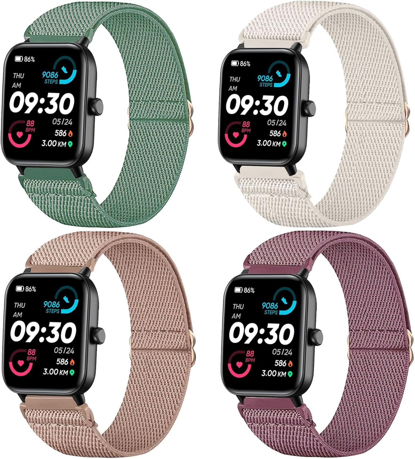 4 Pack Stretchy Watch Bands Compatible with Woneligo/Fitpolo Smart Watch IDW13, 22mm Loop Nylon Elastic Fabric Strap for FITVII H56/ENOMIR ID208BT/TOOBUR IDW16/MILOUZ IDW19 Watch