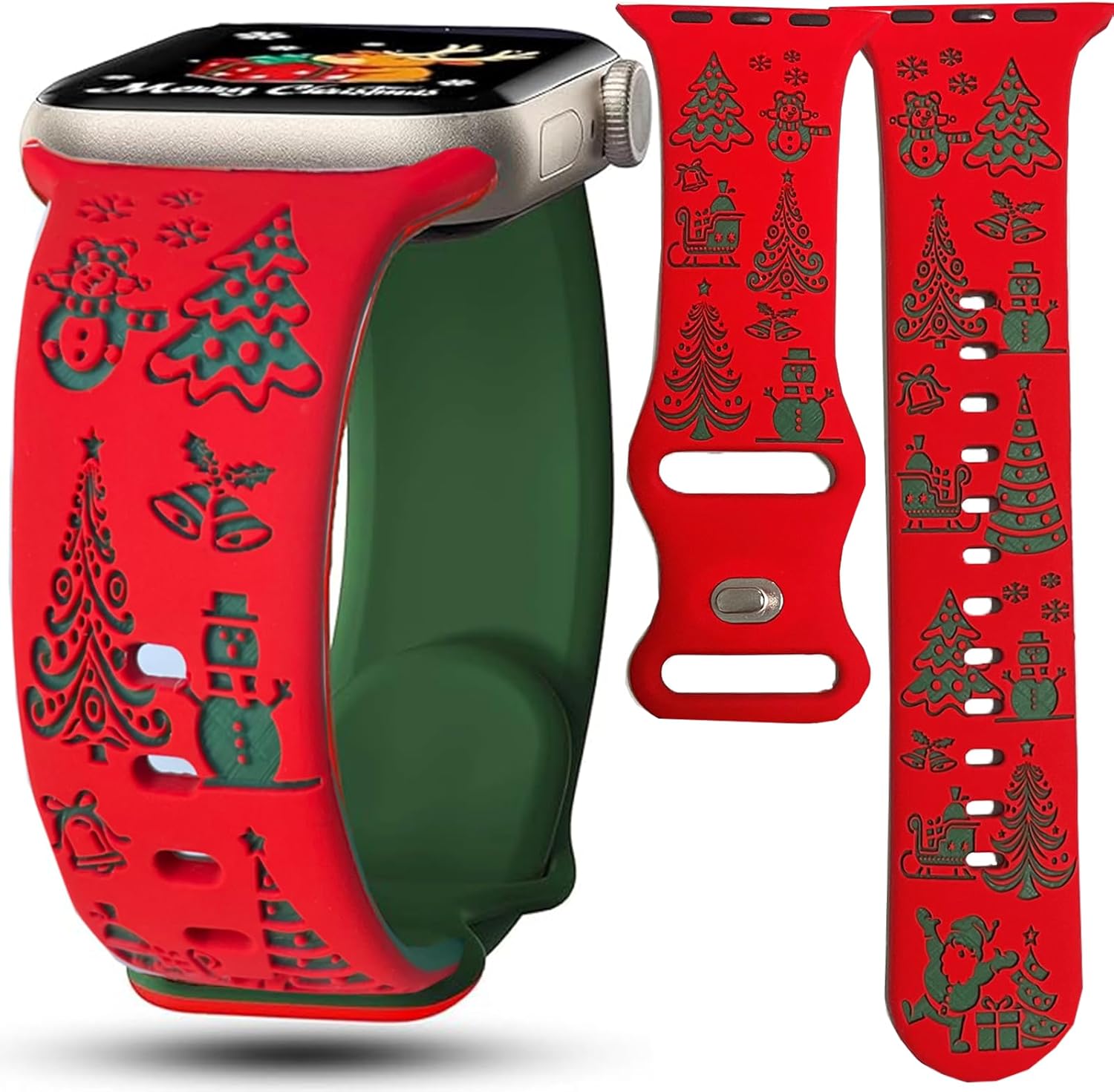 Halloween Fall Christmas Engraved Band Compatible Apple Watch Women 41mm 40mm 44mm 45mm 46mm 42mm 38mm 49mm,Dressy Holiday Maple Skull Pumpkin Snowman Soft Silicone Strap for iWatch Series 11 10 9 8 7 6 5 4 Ultra SE 3 2 1