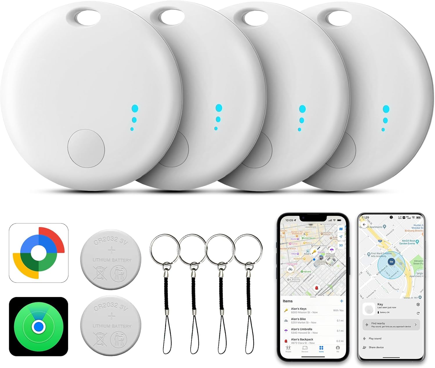 Air Tracker Tags for Android or iOS, Dual System Both iOS and Android Tracker, Find My or Find Hub App, Smart Tracker Tags with Key Ring, Key Finder/Luggage Tracker for Keys,Wallets,Bags,Pets