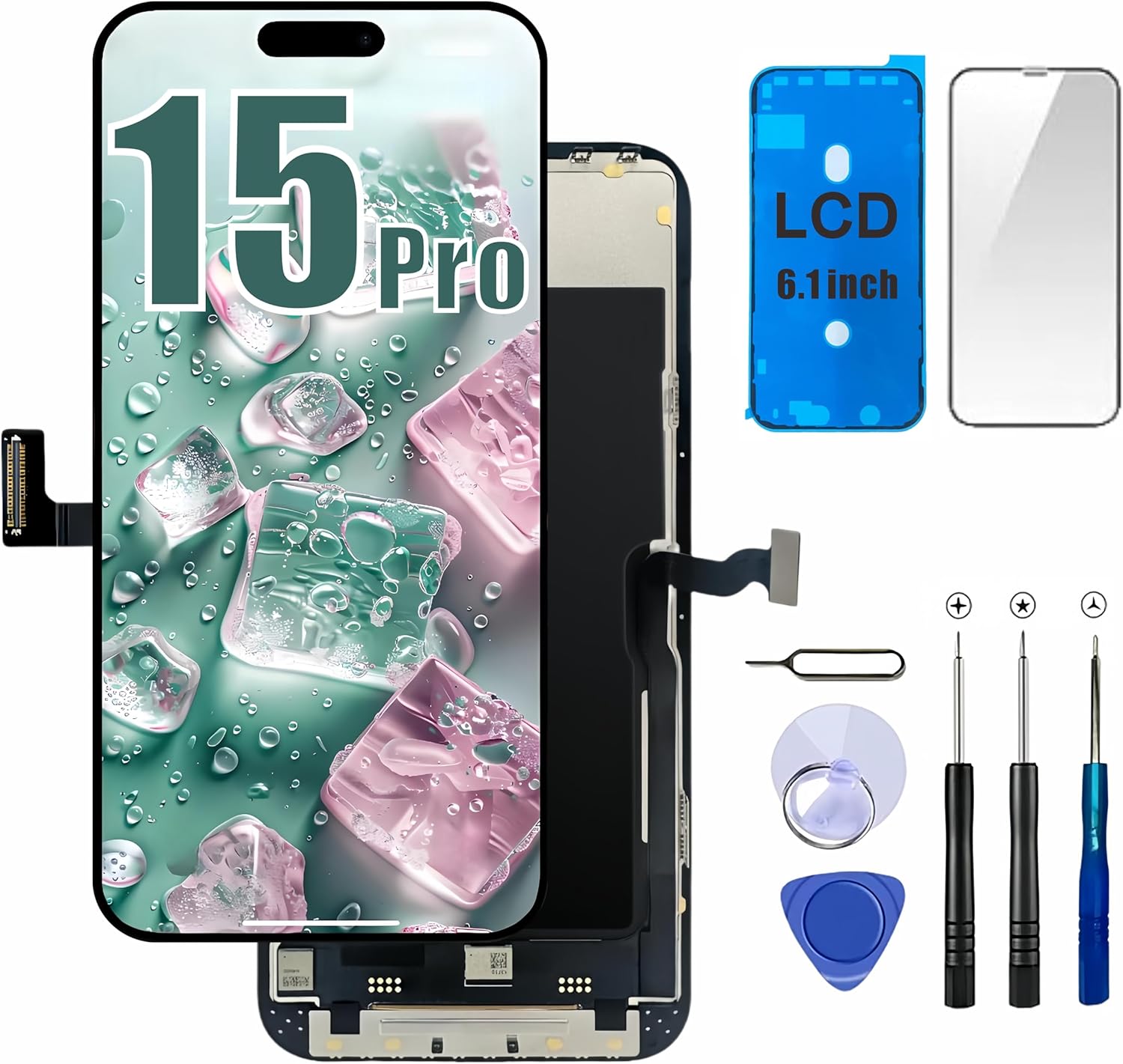 ZTR for iPhone 15 Pro Screen Replacement 6.1'', LCD Display and Touch Digitizer Full Assembly with Repair Tool Kits Waterproof Tape, Screen Protector (for Model A2848, A3101, A3102, A3104).