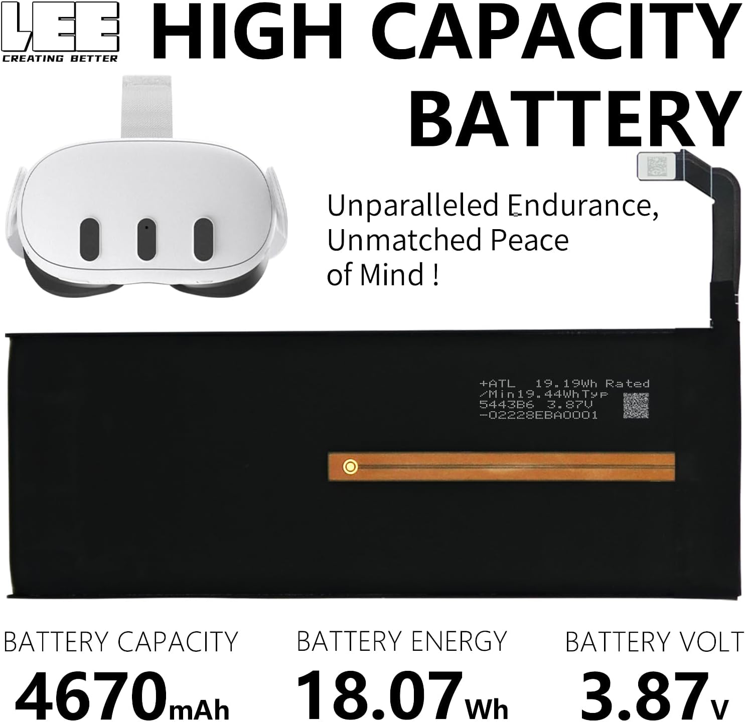 for Meta Quest 3 VR Headset Internal Battery Replacement Kit,2025 New Upgraded High Capacity 4670mAh Integrated Front-Mounted Battery with Repair Tool Kits