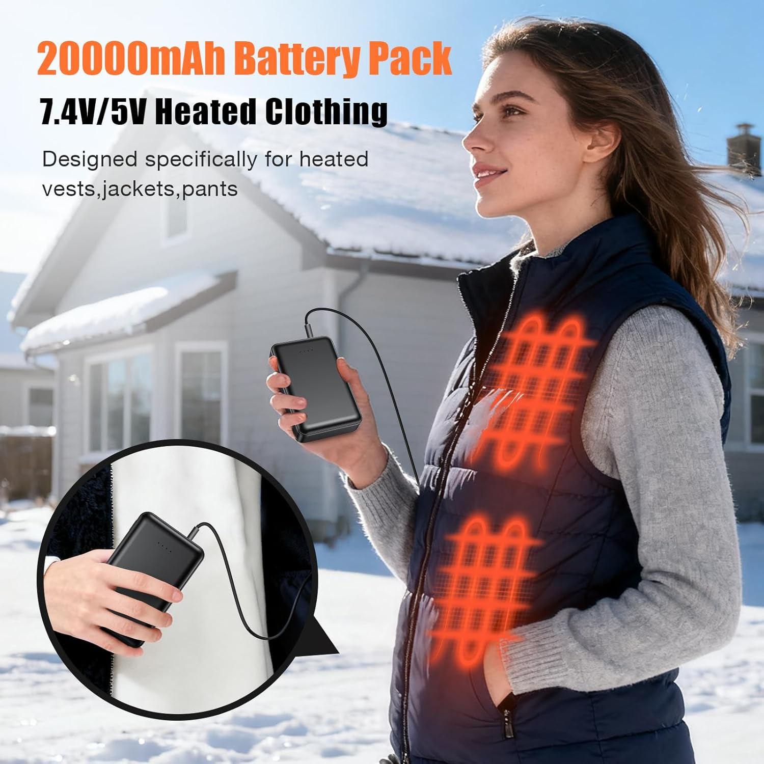 20000mah 7.4V Battery Pack for Heated Vests Jackets Suit for ORORO,Venustas, 5V2A Rechargeable Power Bank for Heated Vests Jackets Hoodies Pants Coat for Men Women Heating Vest