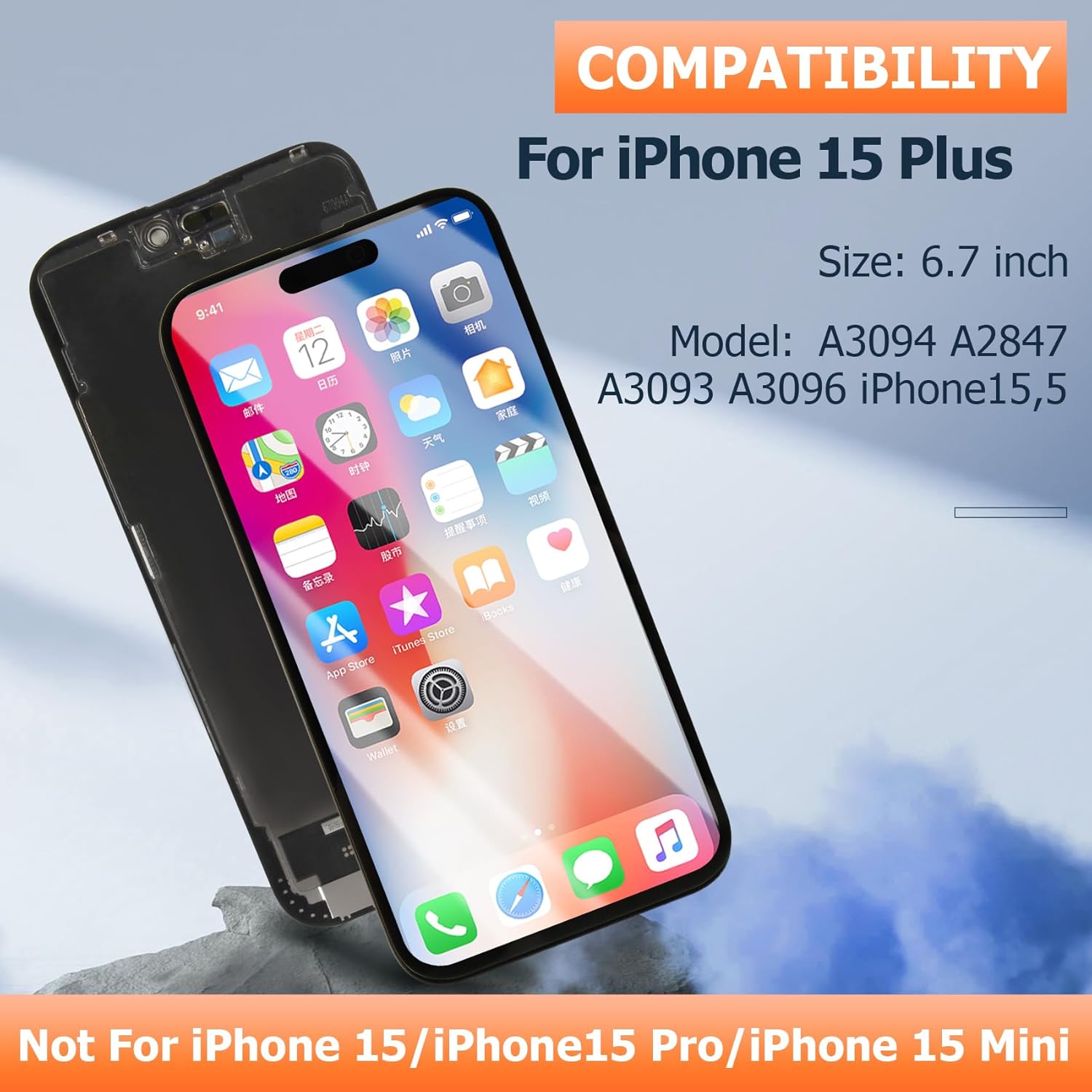 INCELL for iPhone 15 Plus Screen Replacement for iPhone 15 Plus LCD Display A3094 A2847 A3093 A3096 LCD Digitizer Touch Screen Assembly Repair Kits