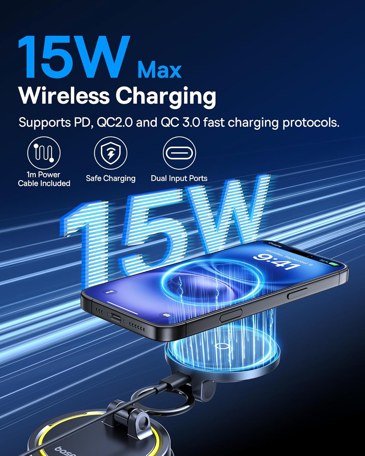 Baseus Vacuum 15W for Magsafe Car Mount Charger, 119LBS Suction Cup 720° Adjustable Magnetic Car Charger Phone Holder, Foldable Cell Phone Holder with Reusable Washable Gel for Car & for iPhone