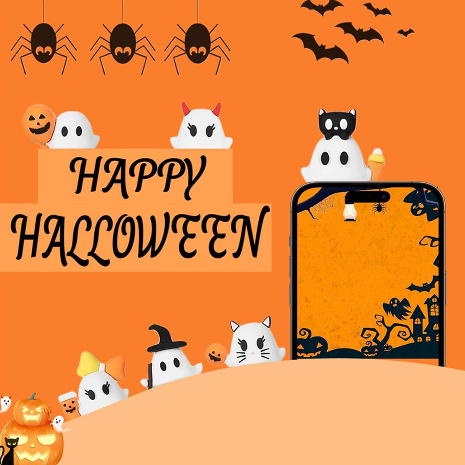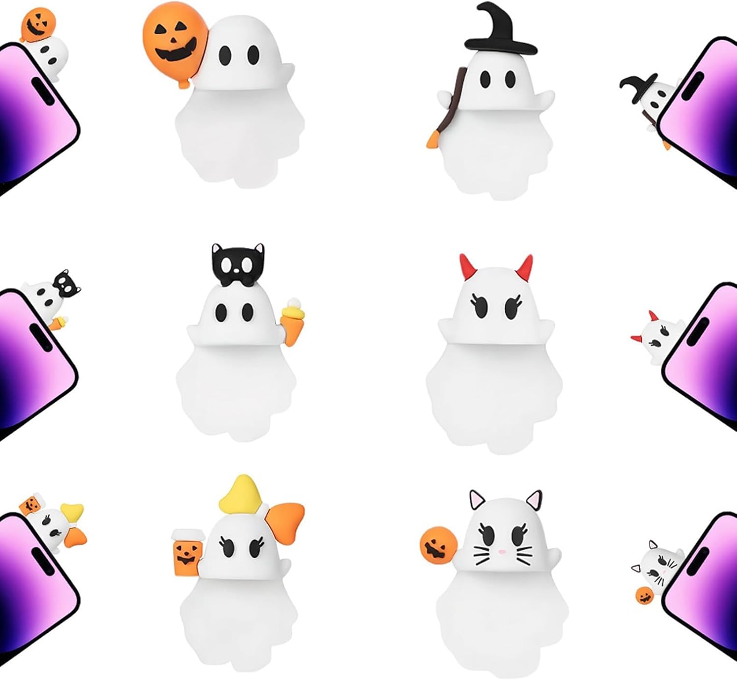 6PCS Ghostees Halloween Phone Decorations, Stick-On Ghost and Pumpkin Charms, White Cute Phone Toppers for Smartphones