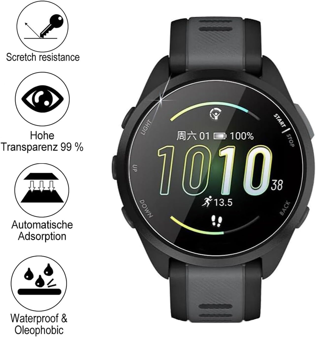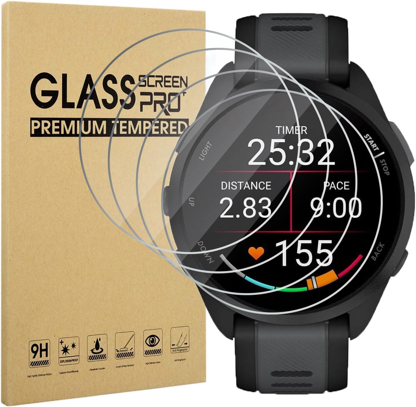 4 Pack Anti-Scratch Film for Garmin Forerunner 165 Screen Protector, HD Tempered Glass Protective Cover for Garmin Forerunner 165, 9H Hardness, Bubble-Free, Easy Installation
