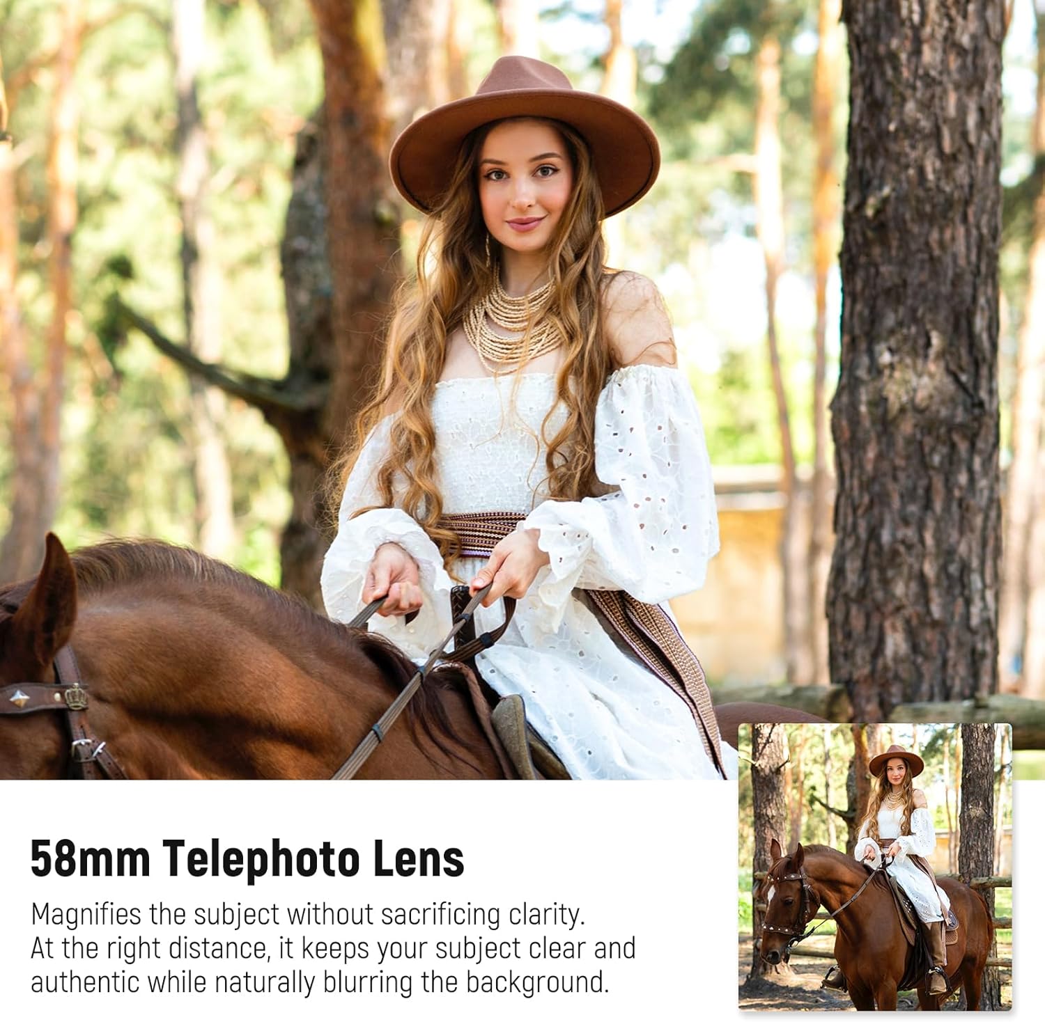 NEEWER 58mm Telephoto Lens with 17mm Threaded Phone Camera Lens Clip, 6 Elements in 5 Groups 2X Magnification Compatible with iPhone Android Samsung for Portrait Photography, LS-71