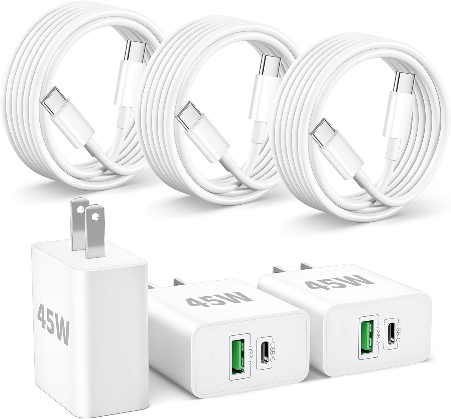 iPhone 17 16 15 Charger Fast Charging, 3-Pack 45W Dual Port GaN USB C Wall Charger Block Cube with 6FT USB C to C Cable Power Cord for iPhone 17/Air/17 Pro/17 Pro Max/16/16 Pro Max/15/15 Pro Max/Plus