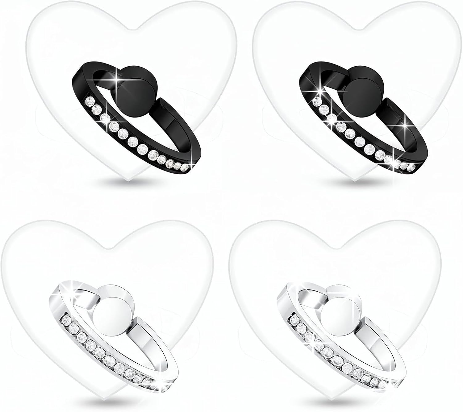 4PCS Transparent Phone Ring Holder, Adjustable Diamond Setting Phone Case Ring Holder Grip 360 Degree Rotation 180 Degree Cellphone Kickstand Grips Holders Heart Shape