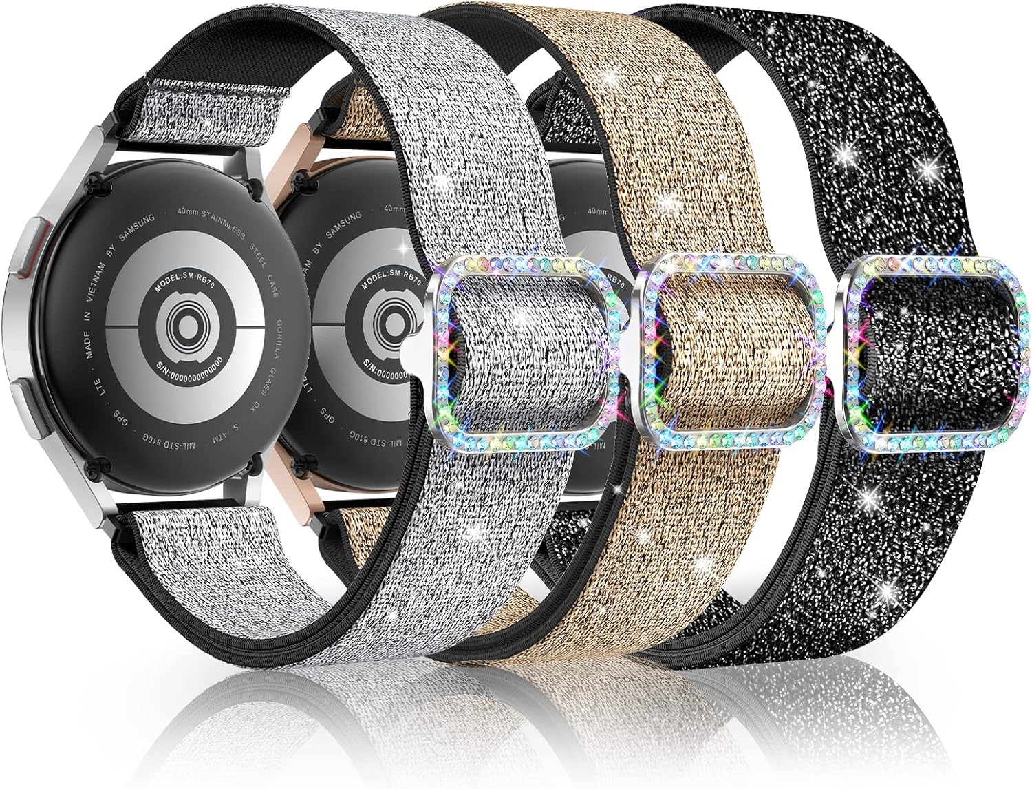LETOID for Samsung Galaxy Watch Bands for Women, Bling Stretchy Nylon Strap Designed for Samsung Galaxy Watch 8/7/6/5/4/FE, Active 2 – Soft, Breathable, Adjustable, Glitter Elastic Wristband