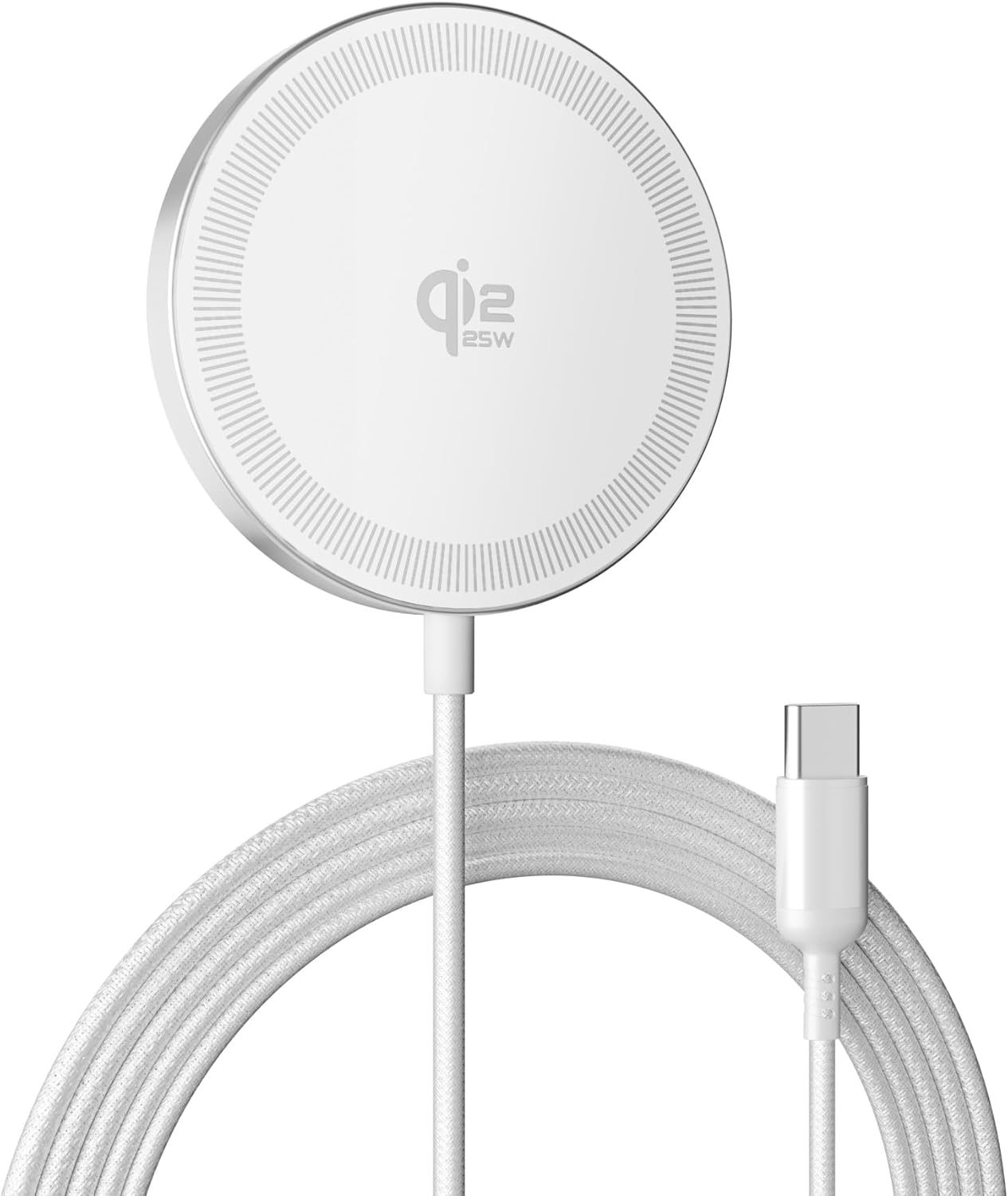 Magnetic Qi2.2 Wireless Charging Pad: 25W Fast Strong-Magnet Lightweight Slim Charger Puck for iPhone 17 16 Pro Max 16e 15 14 13 12 Series & AirPods Pro 2 3 4 Ideal for Travel Home Office 1Pack(White)