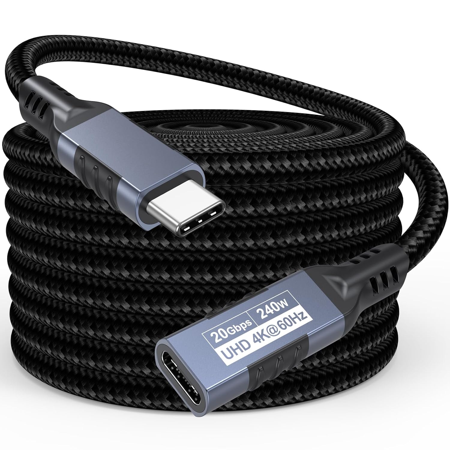 USB C Extension Cable 10FT, USB Type C Male to Female Extender Cord, 20Gbps Data Transfer/240W PD Fast Charging/4K Video Compatible with MacBook, Steam Deck, Switch, USB-C Hub
