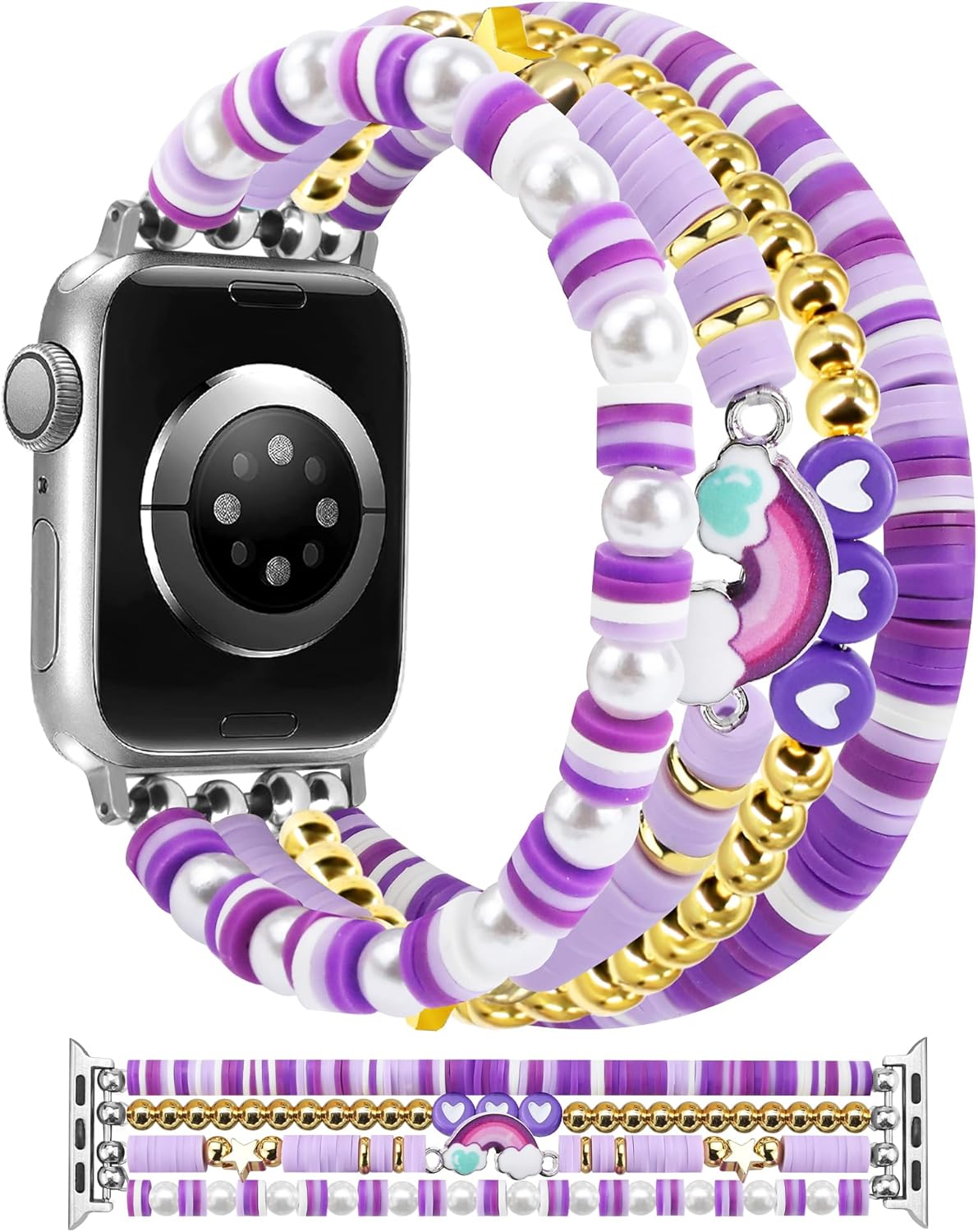 Halloween Bracelets Compatible with Apple Watch Band 44/45/46/49/42mm(S3/2/1) Women Cute Preppy Beaded Handmade Elastic Stretch Strap for iWatch Series 10/9/8/7/SE/6/5/4/3/2/1 (Halloween, M)