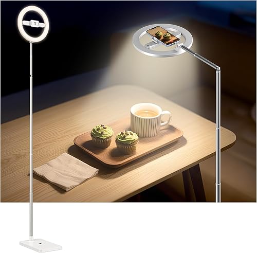 yAyusi 68.5" Overhead Phone Mount with Ring Light for iPhone, 3000mAh 360° Rotation Foldable Rechargeable Ring Light Phone Holder for Video Recording, Photography, Live Streaming, TikTok, YouTube