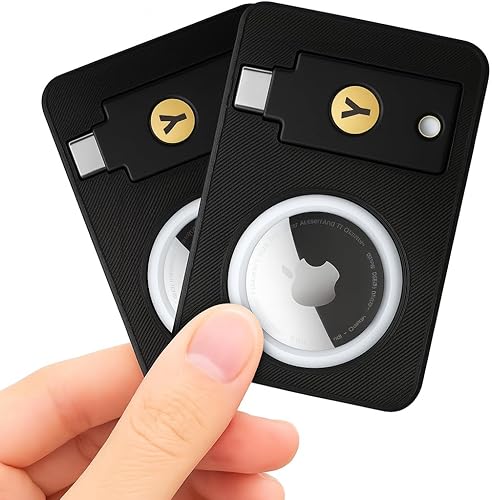 YubiKey 5C NFC Card Holder with AirTag Slot Anti-Loss Tracking Wallet Insert for Everyday Carry (2-Pack, Black)