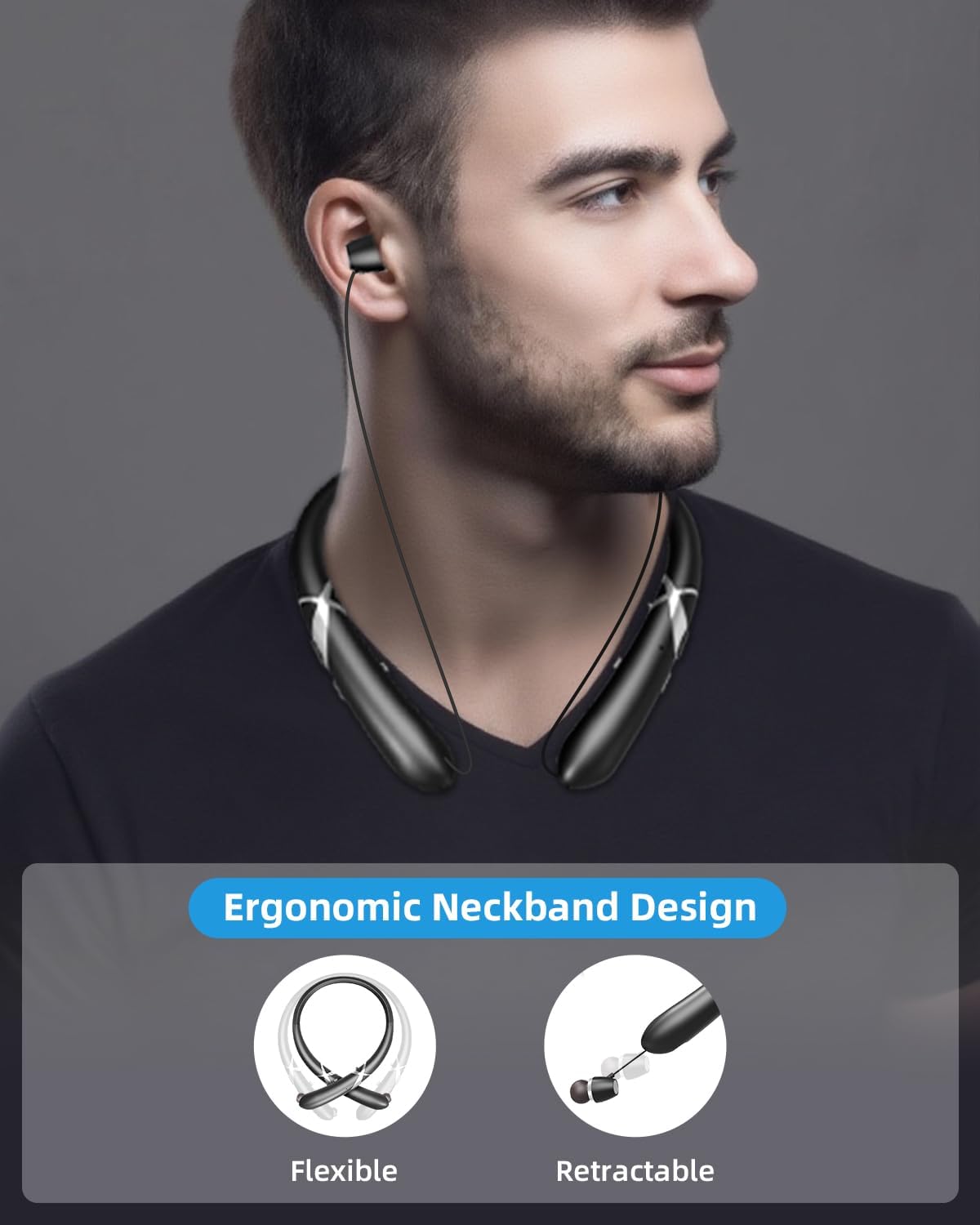 Neckband Bluetooth Headphones, Retractable Headphone Design & IPX5 Sweatproof, Vibration Alerts for Calls - Ideal for Running and Traveling, Outdoor