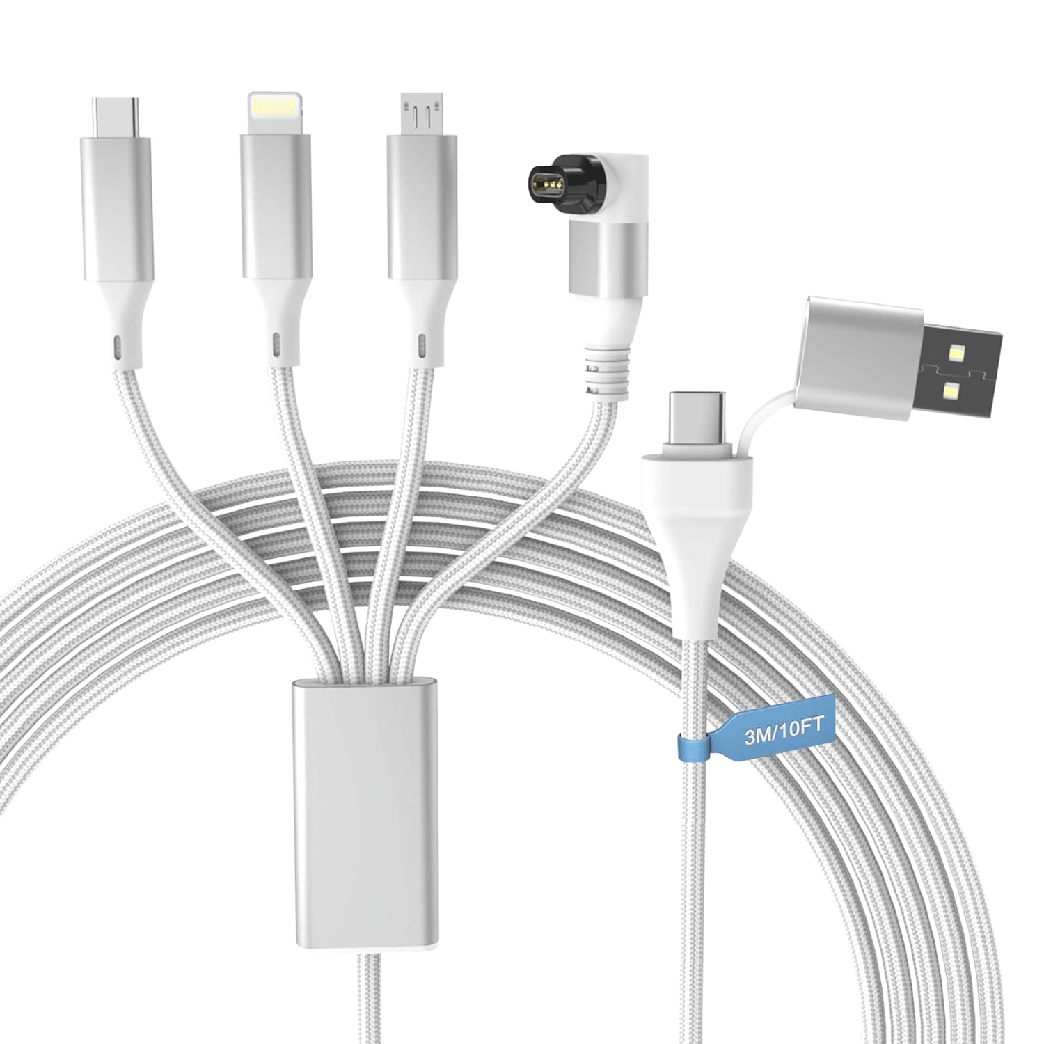100W Multi Charging Cable for Apple Watch, 4-in-2 Charger Cord with Type C/Lightning/Micro USB/Magnetic iWatch Charger for iPhone 17-12, MacBook, iPad, Samsung, 10FT RV & Travel Essentials