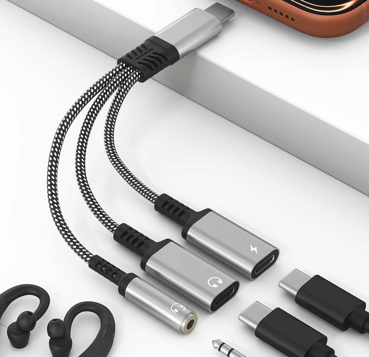 USB C Headphone and Charging Adapter - USB C to 3.5mm Jack + Type-C Audio + Type-C PD Charging Splitter 3 in 1 iPhone Aux Adapter for iPhone 15/16/17 Pro/Max/Plus, iPad, Samsung Galaxy S23/S24 Ultra