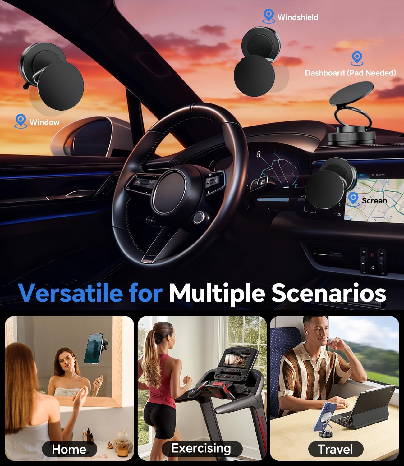 2026 Upgraded Vacuum Magnetic Car Phone Holder 360° Reinforced 96LBS Ultra Suction Cup Phone Mount for MagSafe Cell Phone Holders for Your Car/Gym/Mirror Mount for iPhone & Android