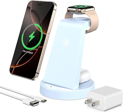 Charging Station for iPhone Charger Stand: 3 in 1 Wireless Charger for Apple iPhone 17 16e 16 15 14 13 12 Pro Max for Apple Watch 11-2 Series for AirPods 4 3 2 Pro - Wireless Charging Station, White