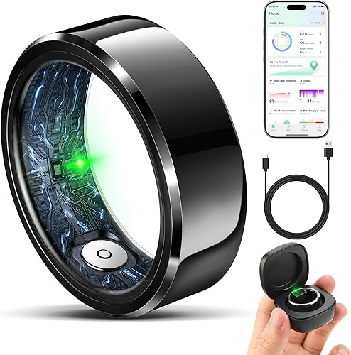Smart Ring for Women Men, Fashion Minimalist Fitness Ring & Sleep Tracker Ring with Heart Rate, SPO₂,Blood Pressure,5ATM Waterproof Health Ring, No Subscription,Travel-Friendly Couple Gift (Black,11)