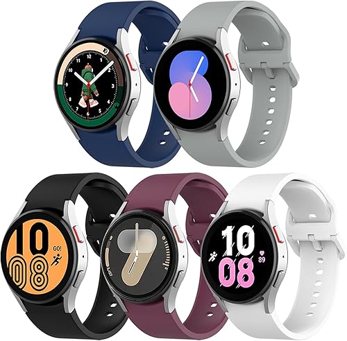 5 Pack Bands Compatible with Samsung Galaxy Watch 4 5 6 7 40mm 44mm, Galaxy Watch 4 6 Classic, Galaxy Watch 5 Pro, 20mm Sport Silicone Watch Band Adjustable No Gap Strap
