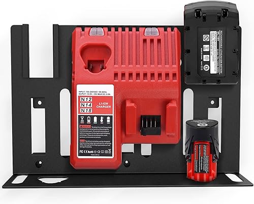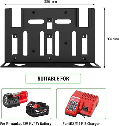 Wall Mount Bracket for Milwaukee M12 M18 Battery and Charger,Battery Storage for 12V18V, Metal 4 Battery Holder and Charger Holder for Tool Room and Garage-4