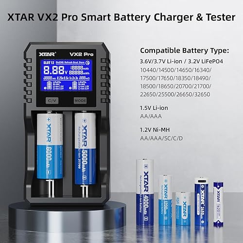 XTAR VX2 PRO Battery Analyzer Charger, Independent 2 Slot 18650 Battery Charger Tester – Dual-Mode for Simultaneous Ni-MH Refresh & 21700 Capacity Testing, No Interference