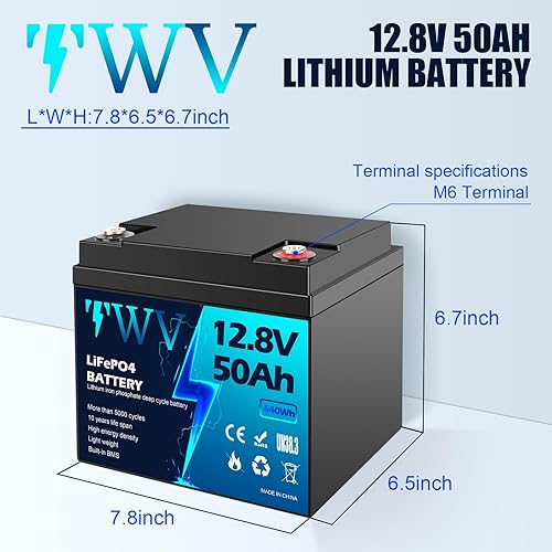 12V 50Ah LiFePO4 Battery, Built-in 50A BMS, 10 Years Lifetime, 5000+ Deep Cycles Lithium Battery, Perfect for Solar Home System, RV, Marine, Off-Grid