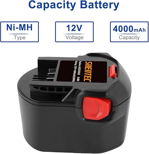 Shentec 4000mAh 12V Replacement Battery Compatible with Ridgid 130252002, AEG B1214G B1215R B1220R, Ni-MH Battery