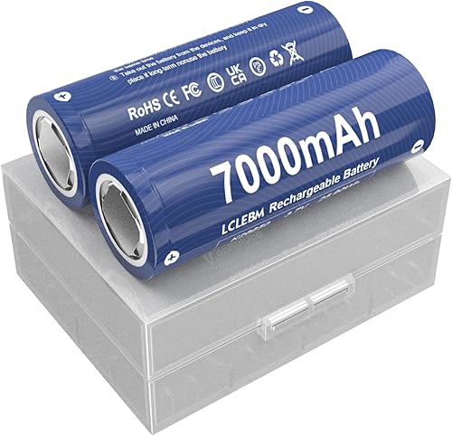 LCLEBM 7000mAh Rechargeable Battery 3.7V Large Capacity Flat Top 2 Pack Batteries for LED Flashlights