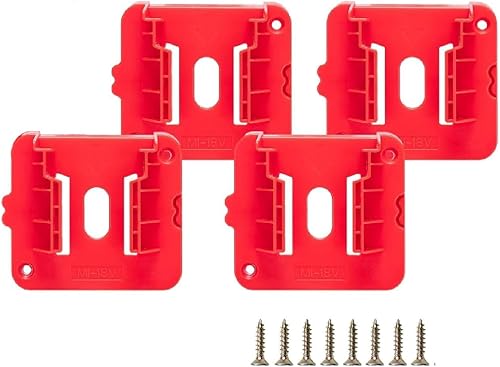 4 Pack Battery Holder for Milwaukee M18 18V Battery Mount Bracket Compatible M18 Models 48-11-1815, 48-11-1828, 48-11-1850, 48-11-1860 (8 Screws Not Included)