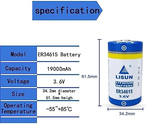▲【2 Pack】 ER34615 3.6v 19000mah Size D Lithium Battery for Multipurpose PLC Programmer ER34615 Battery