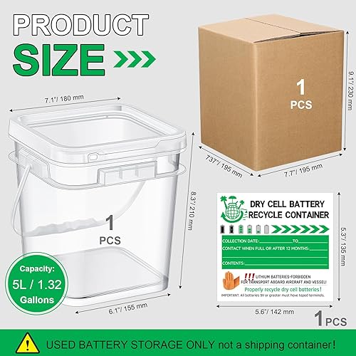 LemonRoad Dry Cell Battery Disposal Container 1.3 Gallon Battery Recycling Container Dry Cell Storage Recycling Bin with Lid Label and Cardboard Box