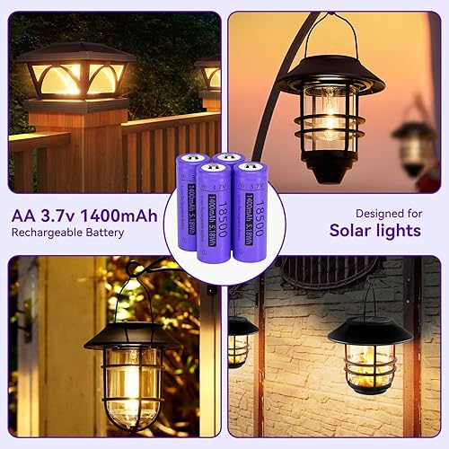 4 Pack 18500 3.7V Rechargeable Lithium Ion Batteries, IMR 1400mAh 5.18Wh Solar Rechargeable Battery for Outdoor Garden LED Lights Flashlight