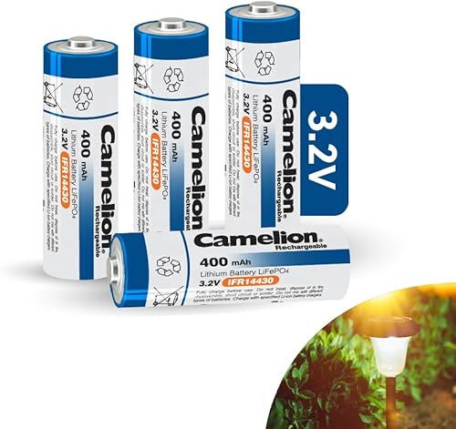 Camelion 14430 3.2v 400mAh Rechargeable Battery, 3.2v Rechargeable LiFePO4 Batteries for Outdoor Rechargeable Solar Garden Light, Panel Light, Tooth Brush, Shaver, Flashlight (4 Pack) NOT AA Battery