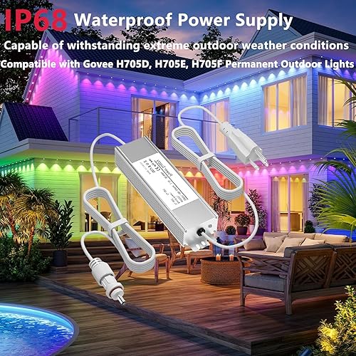 36V Waterproof Power Adapter, Compatible with Govee Permanent Outdoor Light H705D H705E H705F Charging Power Cable (White)