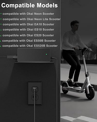 VHBW 42V Compatible with Okai Scooter Charger for Neon Lite EA10, ES10, ES20, ES50B Electric Scooter,9.8ft Power Adapter with LED Indicator
