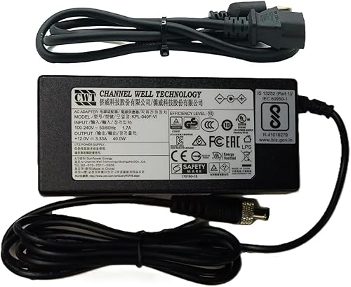 OEM 40W 12V 3.33A 5.5x2.5 mm w/Screw Lock AC/DC Adapter Compatible with Channel Well KPL-040F-VI KPL040F-VI KPL040FVI CWT +12V 3330mA 40.0W Power Supply Cord Charger
