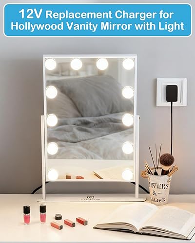 Replacement Cord for Vanity Mirror, 12V Power Adapter for FENCHILIN Vanity Mirror with Lights, Compatible with Hansong DC117-15 DC11715 Hollywood Vanity Makeup Light Bulbs Power Supply Charger Cord