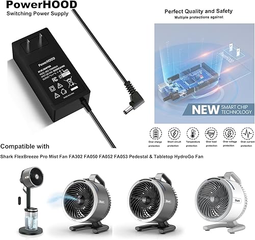 12V AC Adapter Compatible with Shark FlexBreeze Pro Mist Fan FA302 FA050 FA052 FA053 Pedestal & Tabletop HydroGo Fan 12VDC DC 12.0 Volts 36watts Switching Power Supply Cord Charger Cable
