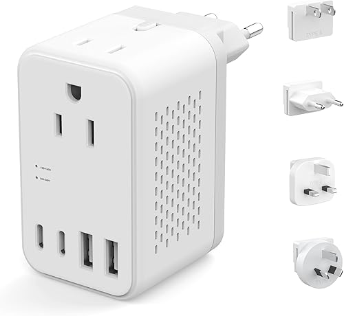 2000W 220V to 110V Voltage Converter US to Europe, Power Converter with Type C, A, G, I Plugs, 2 USB C & 2 USB A Ports, European Travel Converter for Hair Dryer, Curling Iron, Straightener, Chargers