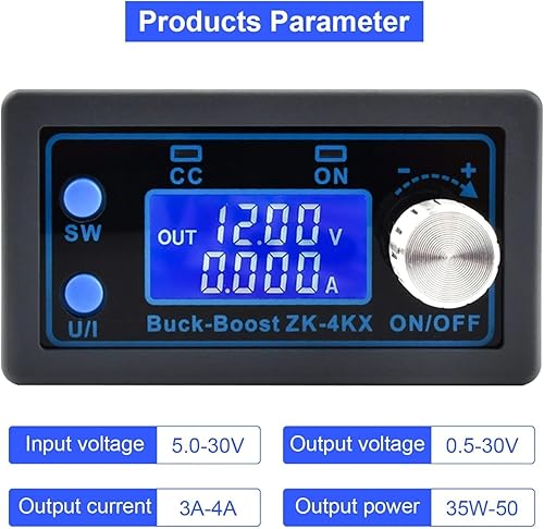 DC Adjustable Voltage Regulator 12V 5V-30V to 0.5-30V 4A,Aideepen Buck Boost Converter 5V 6V 12V 24V CC CV LCD Screen CNC Adjustment for Power Supply,LED Lighting,Solar Power Charging.