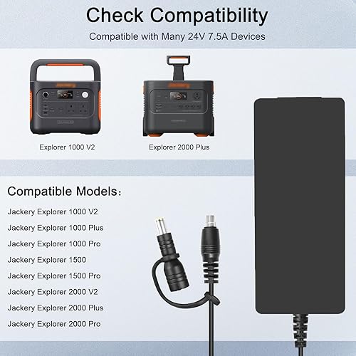 24V 7.5A Power Supply Charger Compatible with Jackery Explorer 1000 880 e1000 e880 1000d 880d 1000 v2 /1000 Plus/2000 v2, 1500 2000 3000 pro Plus, 600 700 Plus KA18024075-6C FSP180-AAAN3