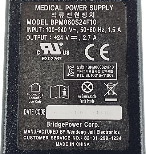 65W BridgePower BPM060S24F10 24V 2.7A Medical Power Supply AC Adapter 5.5x2.0 mm