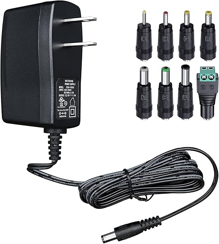 UL Listed 12V 1A AC Adapter Charger Replacement w/8 Tips, Regulated Power Supply Cord for LED Strip Light, CCTV Camera, BT Speaker, GPS, Webcam, Router, DC12V Transformer
