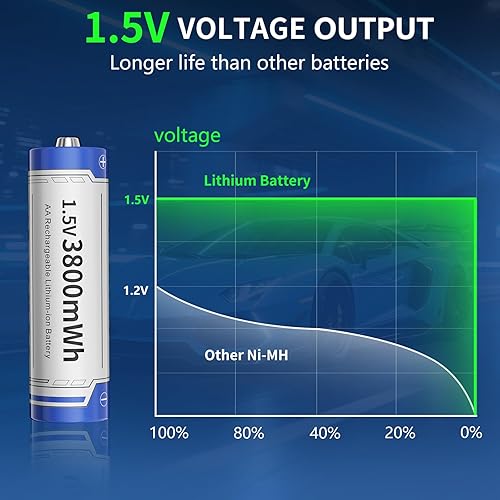 Rechargeable AA Batteries Lithium with Charger 8 Pack, 1.5V High Power AA Lithium-ion Battery, 3800mWh High Capacity AA Lithium Batteries, Double A Batteries up to 1600+ Cycle Times