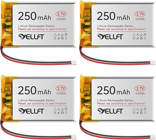 4pcs 3.7V 250mAh 502030 Lithium Polymer Battery 1S LiPo Rechargeable Battery with Protection Board, Micro PH2.0 Plug Compatiable with ESP32 Development Board