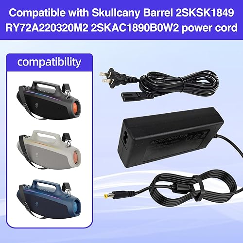 Compatible with Skullcandy Barrel Bluetooth Boombox XT Party Speaker DC22V Power Charger, Compatible with 2SKSK1849, RY72A220320M2, 2SKAC1890B0W2 Power Adapter Power Supply Cord Replace Part