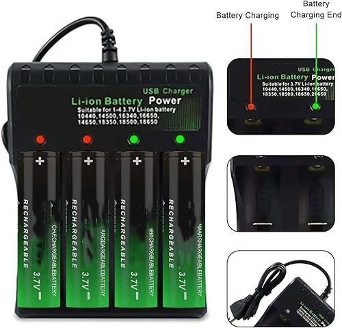 3.7V Rechargeable Battery 9900mAh Universal Smart Charger for 26650 14500 16340 14250-20250930-FUS8-126 (Button Top, 4 Pack+4 Bay Battery Charger)